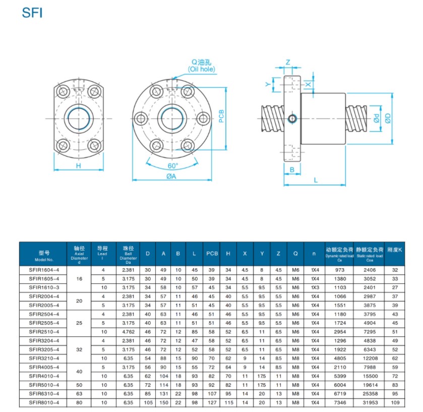 滚珠丝杆螺母SFI系列